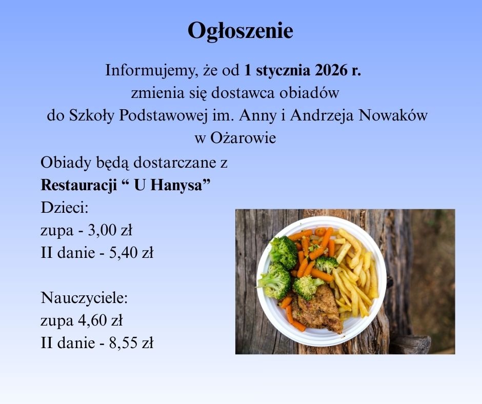 Obiady od 1 stycznia 2026 r.Obiady od 1 stycznia 2026 r.